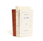 1987. In-8, demi-chagrin marron à coins, dos à 5 nerfs, tête dorée, couverture et dos (Reliure de l'époque). Édition originale. Un des 67 exemplaires sur vélin (n° 14). - PINGET. Du nerf. Ibid., id., 1990. In-12, broché. Édition originale. Un des 77 sur vélin (n° 20).