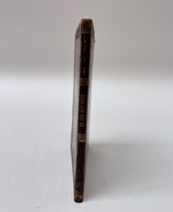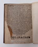 restaurations grossières, notamment sur le dernier feuillet présentant quelques manques sur le texte. 96 pages, quelques notes manuscrites en marge, note de paragraphe. Texte en note en espagnol, intérieur frais. Reliure postérieure plein chagrin brun plat orné d'une guirlande d'encadrement à froid, dos lisse, titre or en long, date 1505 en pied, frottement sur le dos, en coiffe, en charnière et sur les bordures du livres.