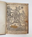 [ANONYME] El Cid Ruy Diaz : La chronica del muy valerolo y invencible cavallero el Cid Ruy Diaz campeador. Gravure de titre avec manque et restauration, coupée court par le relieur. Une mention manuscrite “ano de 1505”. Texte complet, quelques...