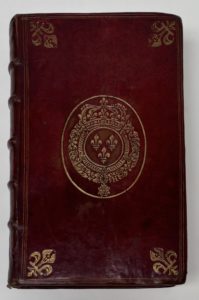 Complet de la gravure en frontispice, de celle de l'entrée du Christ à Jérusalem ; celle du début de l'office du soir du mercredi saint, la Cène. signé le Febure et Fosset, celle du début de l'office du soir du jeudi saint, le Christ en croix, chacune des gravures signées le Febure et Fosset. Reliure in-8 plein maroquin rouge, armes aux centres, plats à encadrement de liserés or, fleurs de lys dans les coins, dos à 5 nerfs, caissons ornés du chiffre “2” couronné, encadré de liserés or avec fleurs de lys dans les coins, trois tranches dorées, tête assombrie, intérieur frais. Très bel état.