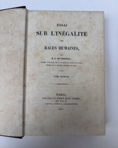 GOBINEAU Arthur Comte de : Essai sur l'inégalité des races humaines. Librairie Firmin Didot frères, Paris, 1853-1855. Edition originale de l'œuvre majeure de Gobineau. Complet des 4 volumes reliés uniformément in-8, pleine toile bordeaux, dos...
