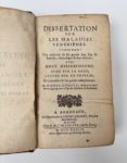 [MEDECINE] DESAULT Pierre : Dissertation sur les maladies vénériennes (...) avec deux dissertations, l'une sur la rage, l'autre sur la phtisie. De l'imprimerie Pierre Calamy et se vend chez N.&J. de la cour, à Bordeaux, 1733. Édition originale....