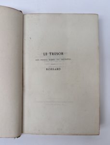 RONSARD Pierre (de) : Œuvres inédites. Auguste Aubry libraire, Paris 1855. Edition originale, complet du portrait de l'auteur en frontispice. Reliure in-12 demi basane havane à coins, dos à 5 nerfs, pièce de titre sur cuir vert, intérieur frais.