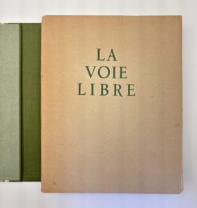 BOFA Gus : La voie libre (notes de tourisme syncopé). Editions Au moulin du Pen Club Paris 1947. E.O. L'un des 160 ex. de tête sur Arches. Bien complet de la suite des illustrations. En feuilles in-8 sous chemise et étui demi-toile verte. Très...