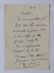 CELINE Louis-Ferdinand : Carte autographe signée “Destouches” à son ami Victor Carré : “Tu ne m'oublies pas ! Je te sais la conscience amicale et [illisible] mais je me médie de tes furies d'artiste ! Tu m'épouvantes souvent ! Si tu te...