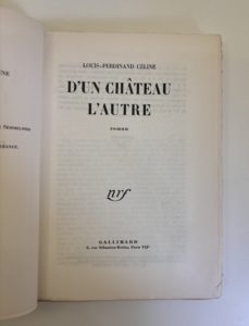 CELINE Louis-Ferdinand : D'un château l'autre. Gallimard Paris 1957. E.O. L'un des 158 ex. sur pur fil, 2ème papier. Broché in-8, état de neuf.