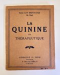 CELINE Louis-Ferdinand : La quinine en thérapeutique. Librairie O. DOIN Paris 1925. E.O. (pas de grand papier). Dédicace autographe signé Destouches sur un morceau d'enveloppe collé en contre plat de la couverture. Bien complet du papillon...