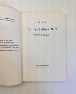 CELINE Louis-Ferdinand : Lettres à Marie Bell. Editions du Lérot Tusson 1991. E.O. L'un des 50 ex. de tête sur Arches. Broché in-8, état de neuf.