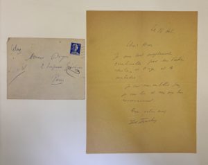 CELINE Louis-Ferdinand : Lettre autographe signée Destouches et adressée après-guerre à René Louis DOYON. Il lui précise qu'il ne l'oublie pas et le lis mais qu'il est « écrabouillé par des taches idiotes et la maladie ». Une page in-8 avec...