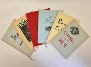 [CHASSE] Lot de 6 plaquettes de la collection Babioles cynégétiques, Pierre Aelberts éditeur Liège. Chaque volume, l'un des 60 ex. sur vélin 2ème papier. André DEMAISON, J'hais la chasse à courre / René GERBERT, Un seigneur de la forêt /...