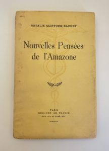 CLIFFORD BARNEY Natalie : Nouvelles pensées de l'amazone. Mercure de France Paris 1939. E.O. sur papier d'édition. Bel envoi à Madame de MORO. Broché in-12, couverture tachée. Les dédicaces manuscrites de Clifford Barney sont peu courantes.