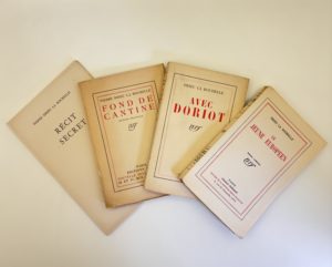 DRIEU LA ROCHELLE Pierre : Lot de E.O. Récit secret AMG éditions Paris 1951. L'un des 500 ex. sur Rives, seul grand papier. Broché in-8 / Fond de cantine. NRF Paris 1920. L'un des 940 ex. sur pur fil. Broché in-12 / Avec Doriot. Gallimard Paris...