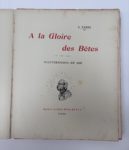 et FABRE A. : A la gloire des bêtes. Maison Alfred Mame et fils éditeurs, Tours, s.d. Reliure d'éditeur in-4, pleine toile beige, dos jauni, petits frottements en tête et en coiffe de dos, plat illustré, quelques rousseurs intérieures.
