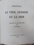 HEMINGWAY Ernest : Le vieil homme et la mer. Paris aux dépens de l'artiste 1958. Première édition illustrée par Naly, “gravure à la manière noire”. Tirage limité à 115 exemplaires sur grand papier d'Auvergne, seul grand papier. Complet...
