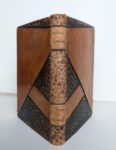 noirs, sur les plats et passant sur le dos deux grandes lanières de chagrin blond, dos éclairci et frotté, lettrines peu lisibles sur le titre, tête dorée, couverture et dos conservés.