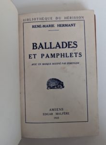 HERMANT René-Marie : Balades et pamphlets. Edition Edgar Malfère, Amiens, 1925. Édition originale, sans grand papier annoncé, complet avec un masque dessiné par Ermengem. Reliure in-12 plein chagrin havane orné à froid de petit triangles...
