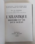 LE DANOIS Edouard : L'Atlantique. Histoire et vie d'un océan. Édition Albin Michel, Paris, 1938. Edition originale sur papier courant après 20 rives. Curieuse reliure in-8 plein papier lisse et moucheté brun et vert, sur le dos et une partie de...