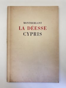 MONTHERLANT Henry de : La déesse Cypris. Henri Colas éditeur Paris 1946. E.O. L'un des 190 ex. Lana, seul grand papier avec 10 de tête sur même papier mais avec les photos brossées. Bien complet des 12 études de nus par Laure ALBIN-GUILLOT....
