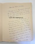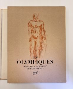 MONTHERLANT Henry de : Les olympiques. NRF Paris 1943. Première édition illustrée par le grand sculpteur Charles DESPIAU. L'un des 175 ex sur Arches, seul grand papier après 10 Mûrier d'Annam. Superbe envoi pleine-page au critique littéraire...