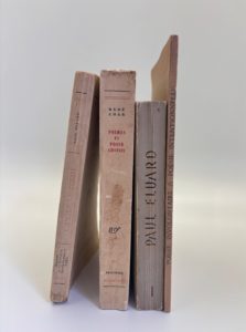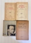 Paul ELUARD, L'amour, la poésie. Gallimard 1929, ex. en S.P. Envoi à Pierre GOEMAERE / BRETON André, René CHAR poèmes et prose. Gallimard 1957, ex. en S.P. Envoi à Edouard CAEN. Soit 4 volumes brochés in-12 ou in-8 certains dos jaunis.