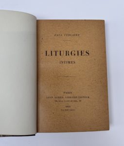 VERLAINE Paul : Liturgies intimes. Léon Vanier libraire éditeur Paris 1893. Edition originale sans grand papier annoncé ; suivi de Elégies, chez le même Paris 1893. Edition originale sans grand papier annoncé ; suivi de Dans les limbes, chez le...