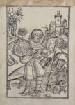Au verso du titre, un grand bois à pleine page représente l'auteur en costume de pèlerin, portant un écu à ses armes et suivi d'un chien.