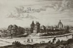 Francfort-sur-le-Main, Caspar Merian, 1656-1657. 5 parties (sur 13) en un volume petit in-folio, demi-basane fauve avec coins, dos fileté (Reliure du XVIIIe siècle).Édition originale en allemand de cette monumentale description topographique de la France sous le règne de Louis XIV publiée par le graveur Caspar Merian.