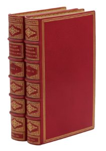Pierre Gaillard, 1701. 2 volumes in-12, maroquin rouge, triple filet doré, dos orné, dentelle intérieure, tranches dorées (Chambolle-Duru).Édition recherchée pour la remarquable illustration de Romeyn de Hooghe : un frontispice gravé par Gilliam van der Gouwen et 100 eaux-fortes à mi-page, dont 90 gravées par Romeyn de Hooghe lui-même et 10 interprétées par Lorenz Scherm et Jan van Vianen.