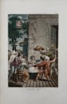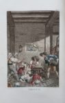 Chef-d'œuvre de l'illustration gravée en couleurs, dont l'éditeur Defer de Maisonneuve fut un des pionniers, elle est ornée de 4 superbes figures dessinées par Monsiau, gravées par Clément et coloriées à la poupée, montrant des scènes de cabaret, de guinguette, de vente à la prisée, etc.