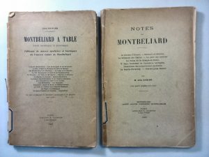[MONTBELIARD].— SAHLER (Léon). Montbéliard à table. Etude historique et économique. Paris, H. Champion, 1907 ; in-8, broché. Fac-similé de signatures et 6 planches hors texte. Dos fendu, brochage un peu faible.— JOINT, du même : Notes sur...
