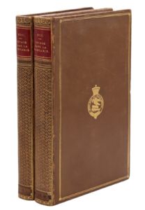Paris, Adrien Le Clère & Cie, 1850. 2 volumes in-8, veau fauve, deux filets dorés et un pointillé à froid, armoiries au centre du premier plat, dos lisse orné à la grotesque, pièce de titre rouge, coupes décorées, tranches marbrées (Reliure anglaise de l'époque).Édition originale, illustrée d'une carte de Chine par A.-H. Dufour repliée hors texte.