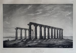 Paris, Paul Renouard, 1833. Grand in-folio, bradel cartonnage chamois, premier plat imprimé, dos muet (Reliure de l'éditeur).Unique édition de cet important compte-rendu des fouilles archéologiques conduites à Métaponte en 1825 et 1828 par H.-T. de Luynes et l'architecte F.-J. Debacq.