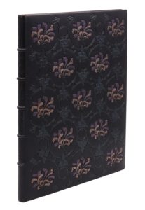 Somptueuse reliure mosaïquée de Marius-Michel, comportant sur une garde l'étiquette de l'Exposition universelle de 1900, où le relieur se vit décerner le grand prix.