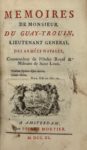 Amsterdam, Pierre Mortier, 1740. Petit in-8, veau marbré, dos orné, tranches jaspées (Reliure de l'époque).Édition définitive publiée par Godard de Beauchamps. Elle est illustrée d'un portrait par N. de Larmessin, un plan dépliant de la baie de Rio de Janeiro et 5 planches dépliantes, gravées par Le Bas, représentant des combats navals.