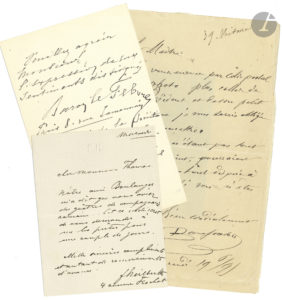 BEAUX-ARTS. 37 L.A.S. adressées au sculpteur Gabriel-Jules THOMAS (1824-1905). Bel ensemble de lettres de sculpteurs, peintres et critiques d’art, adressées au sculpteur. Auguste-Jules Boussaton (2), Auguste Cain (3), Pierre-Louis...