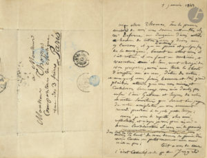 Réunions littéraires et musicales. [Ambroise Thomas s’était lié avec Ingres lors de son séjour à la Villa Médicis.] « Tous les premiers mardis du mois nous sommes rassemblés chez Mr Defresne [Adolphe-Marcellin Defresne (1793-1869) secrétaire général de la Seine] une douzaine d’amis, artistes, hommes de lettres Docteurs – nous y dinons, nous y causons, il y a un piano et quelques fois de la musique, Benoit [le compositeur et organiste François Benoist (1794-1878)] en étant mais il s’est retiré. Il nous faut un musicien, et Varcollier moi et tous, m’ont chargé de vous proposer, mais avec toute la liberté d’accepter oui ou non, d’être des notres »…