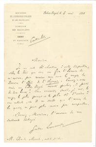 [Claude MONET]. Gustave LARROUMET (1852-1903). L.A.S., 5 mai 1890, à Claude Monet ; 1 page in-8 à en-tête Ministère de l’Instruction publique et des Beaux-Arts. Direction des Beaux-Arts. Il se met à la disposition de Monet...