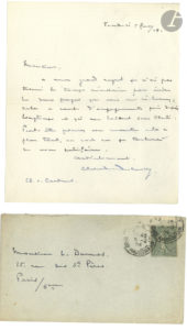 Claude DEBUSSY (1862-1918). L.A.S., 5 février 1904, à Louis Dumas ; 1 page in-8, enveloppe timbrée. « À mon grand regret je n’ai pas trouvé le temps nécessaire pour écrire les deux pages que vous me...
