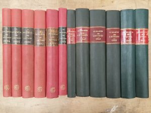Bulletin des lettres. Organe du Cercle lyonnais de sélection. Lyon, H. Lardanchet, 1932-1952 ; 12 vol. in-8, bradel demi-toile rouge pour les 6 premiers, verte pour les 6 suivants, pièce de titre au dos. Réunion des premières années de cette...