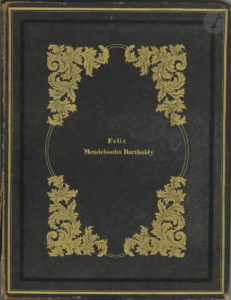 Felix MENDELSSOHN-BARTHOLDY (1809-1847). Recueil de 7 Lieder ou cycles de Lieder, [1835-1860] ; un vol. in-fol., reliure de l’époque chagrin noir, plats avec cadre de filets dorés et à froid et décor doré de feuillages avec...