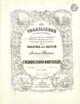 nom du compositeur sur le plat sup., tranches dorées (dos abimé) ; lég. rouss. Belle réunion de Lieder, la plupart en première édition et sans numéro d’opus. Zwei Gesänge von Eichendorff. – Das Waldschloss. – Pagenlied. (Elberfeld, F.W. Arnold, [ca. 1835]), cotage 307. 11 p. Zwei Gesänge. – Ich hör’ ein Vöglein locken. – Todeslied der Bojaren (Leipzig, C. A. Klemm, [1850]), cotage 590. Partition, et parties de chant (Singstimme). 8 p. Sehnsucht [op. 9 n°7] (Berlin, Schlesinger, [1848]), cotage 3514. 5 p. Seemann’s Scheidelied (Berlin, Schlesinger, [1850]), cotage 2801.3 p. Der Blumenkranz. (Braunschweig, Musikalisches Magazin von J.P. Spehr, [1841]), cotage 2558. Du recueil Helios. Lieder... componirt von C. Banck, Conr. Kreutzer, C. Loewe, H. Marschner, Felix Mendelssohn-Bartholdy, C.G. Reissiger & L. Spohr. Titre et p. 15-18. Warnung vor dem Rhein (Bonn, N. Simrock, [1847]), cotage 4662. 3 p. Drei Volkslieder von H. Heine und Kaufmann… nebst Suleika und Hatem für zwei Stimmen. – Wie kann ich froh und lustig sein ? – Wenn ich auf dem Lager liege – Wasserfahrt : Ich stand gelehnet. Neue Ausgabe (Berlin, Schlesinger, [ca 1860], cotage 2091. 5,6 et 5 p.