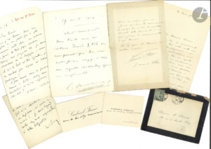 MUSIQUE. 6 L.A.S. et 2 cartes autogr. à Charles ou Louis DUMAS, 1902-1904 ; enveloppes. Gabriel Fauré (cdv), Vincent d’INDY (2), Gabriel Pierné (cdv), Camille SAINT-SAËNS, Charles-Marie WIDOR (3).