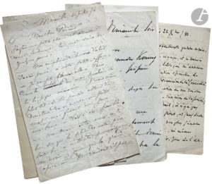 l’incendie de l’Opéra-Comique), Caroline Carvalho-Miolan (2), Gustave Charpentier (2 l.s., 2 cdv et 5 télégrammes à Albert Acremant), Lucien Fugère (à Massenet), Charles Gounod (à Henriette Fuchs, 1880), Alfred Grünfeld (4, 1907-1918), Jules Massenet (5), Henry de Saint-Georges, Marie Wassilieff, Jean-Baptiste Weckerlin. On joint 30 photographies (12,4 x 8,6 cm) de chanteurs d’opéra et d’opérettes parues dans Paris-Théâtre : Caron, Christian, Daubray, Fugère, Grivot, Hyacinthe, les frères Lionnet, Talazac, etc. ; et une photographie (format cdv) du pianiste Henri Ravina.