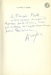 Bott (1935-2022) : « à François Bott – ce livre ne sera envoyé à la presse que le 15 mai, mais par entorse ce simple remerciement pour Bérénice. Aragon ».
