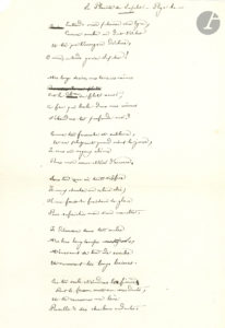 Théodore de BANVILLE (1823-1891). Poème autographe signé, La Plainte de Sapho, dimanche 17 mars 1872 ; 1 page et demie in-fol., avec quelques ratures et corrections. Beau poème, non recueilli en volume, de 8 quatrains. « Entends...