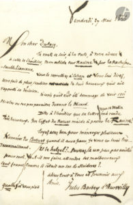 Jules BARBEY D’AUREVILLY (1808-1889). L.A.S., 27 mars 1856, à Armand Dutacq ; 1 page in-8. Il lui envoie son article (pour Le Pays) « sur Racine & sur La Rochefoucault-Liancour » [au sujet des Études littéraires et...