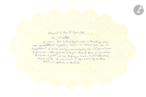 Michel BUTOR (1926-2016). 3 L.A.S., février-août 1971, à Jean-Paul Cathala ; une carte postale, une page in-4, une page grand in-8 sur papier à bordure dentelle, une enveloppe. Nice 5 février 1971. Il remercie pour l’envoi du...