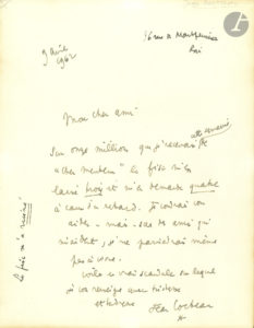 à cause d’un retard. Je voudrais vous aider, mais sans des amis qui m’aident je ne parviendrais même pas à vivre. Voilà le vrai scandale sur lequel je vous renseigne avec tristesse et tendresse ». En marge, il ajoute : « Le fisc m’a ruiné ».