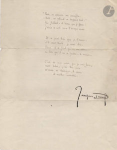 Jacques DEVAL (1895-1972). Poème autographe signé, 1919 ; 2 pages in-4. Poème de 7 quatrains, adressé à une femme qui l’a quitté, daté « Vendredi 28.11.19 » : « Don Rodrigue, malgré...