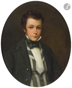 [Jules de GONCOURT (1830-1870)]. Portrait peint par Alphonse COLAS (Lille 1818-1887). Huile sur toile, 73 x 59 cm. Portrait inconnu du jeune Jules de Goncourt. Étiquette sur le dos : « Collection J.B. Corbin […] Nancy...